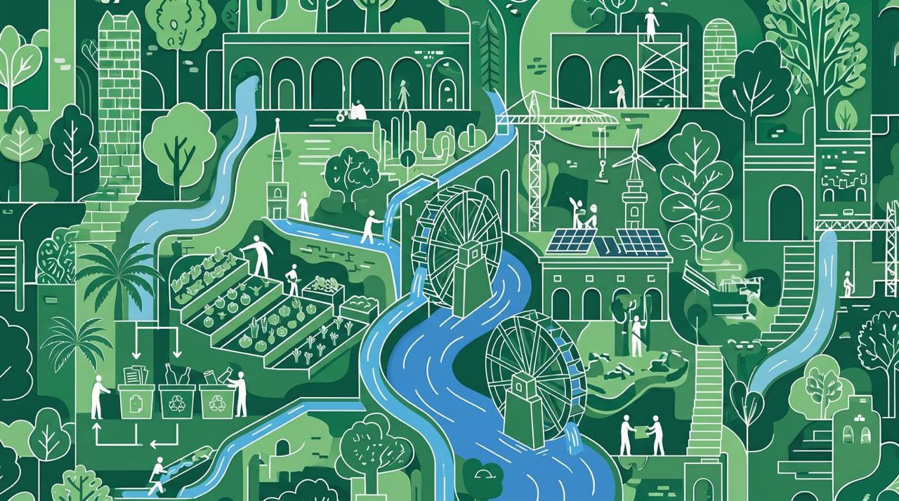 Then there is the fact that no analyst has yet treated as an advantage. Hama Governorate is the only governorate in Syria, excluding the Damascus metropolitan area, that shares no border with a foreign country, landlocked within Syria itself and surrounded on all sides by other governorates, with Idlib and Aleppo to the north, Raqqa to the east, Homs to the south, and Tartous and Latakia to the west. Where every other Syrian city can rely on cross-border supply chains, foreign labour arbitrage, or port access, Hama cannot, which means Hama must, by the sheer logic of its geography, develop the conditions for self-sufficiency. It has water from the Orontes and the Ghab aquifer, consistent solar irradiance in the central interior, wind channelled by the coastal mountain ranges, and fertile land that produced a fifth of Syria’s food before the war, the natural resource stack that a circular economy requires. The geography that looks like isolation is actually the blueprint: a governorate that can generate its own energy, process its own food, treat its own water, and construct its own infrastructure without dependence on a single corridor it does not control, and no other Syrian city can make that claim.